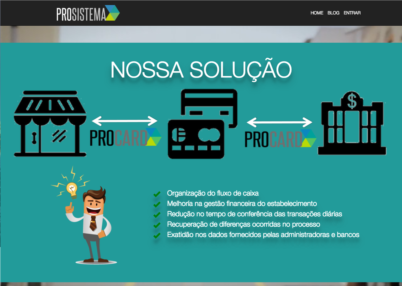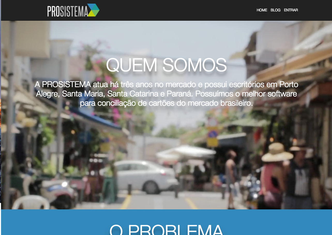 Durant mon voyage de 2 mois au Brésil, j'ai travaillé avec une compagnie locale pour refaire leur site web. Prosistema est une entreprise qui gère un logiciel de gestion de transaction bancaire. La réalité au Brésil n'étant pas la même que nous, une entreprise comme Prosistema a beaucoup d'avenir.